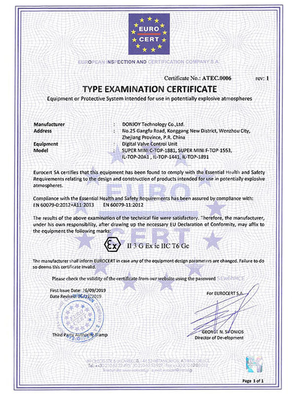 El dispositivo de retroalimentación de posición de válvula rotativa de la serie F-TOP-1671, ha obtenido la certificación a prueba de explosiones ATEX de la Unión Europea 2014/34 / UE, número de certificado ATEC.0006; F-TOP-1671 es un dispositivo de retroalimentación de válvula de carrera angular, que tiene una pantalla de lámpara de tres segmentos, prevención de fugas de válvula, el usuario de la posición de la válvula puede calibrarse en el sitio, salida de señal analógica 4-20 mA, PNP DC24V, bus AS-I;