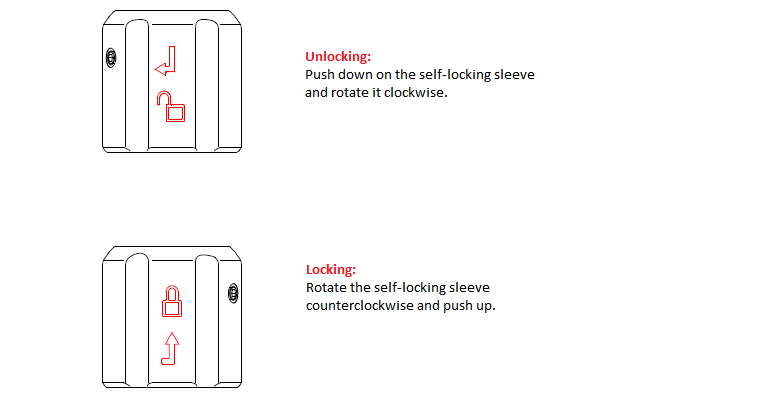 Unlocking: When the valve is locked, push down the self-locking sleeve and rotate it clockwise.