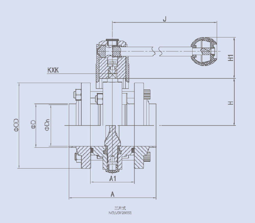 DONJOY sanitary stainless steel three piece butterfly valve, double flange butterfly valves